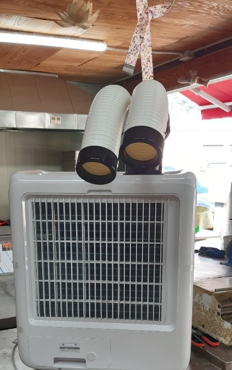 이렇게 간편한 야외에어컨이기 때문에 시원한 바람이 필요한 곳이라면 어디에서든 사용할 수 있습니다. 실외기도 하나로 통합되어 있기 때문에 별도의 설치가 필요하지 않아 제품 수령 즉시 사용이 가능합니다.